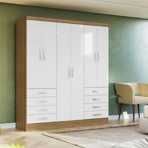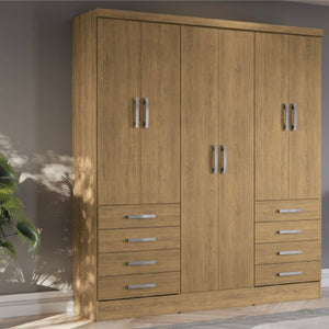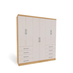 Este clóset versátil tiene amplios espacios tanto para colgar ropa como para guardar en sus cajones. Apto para compartirlo.