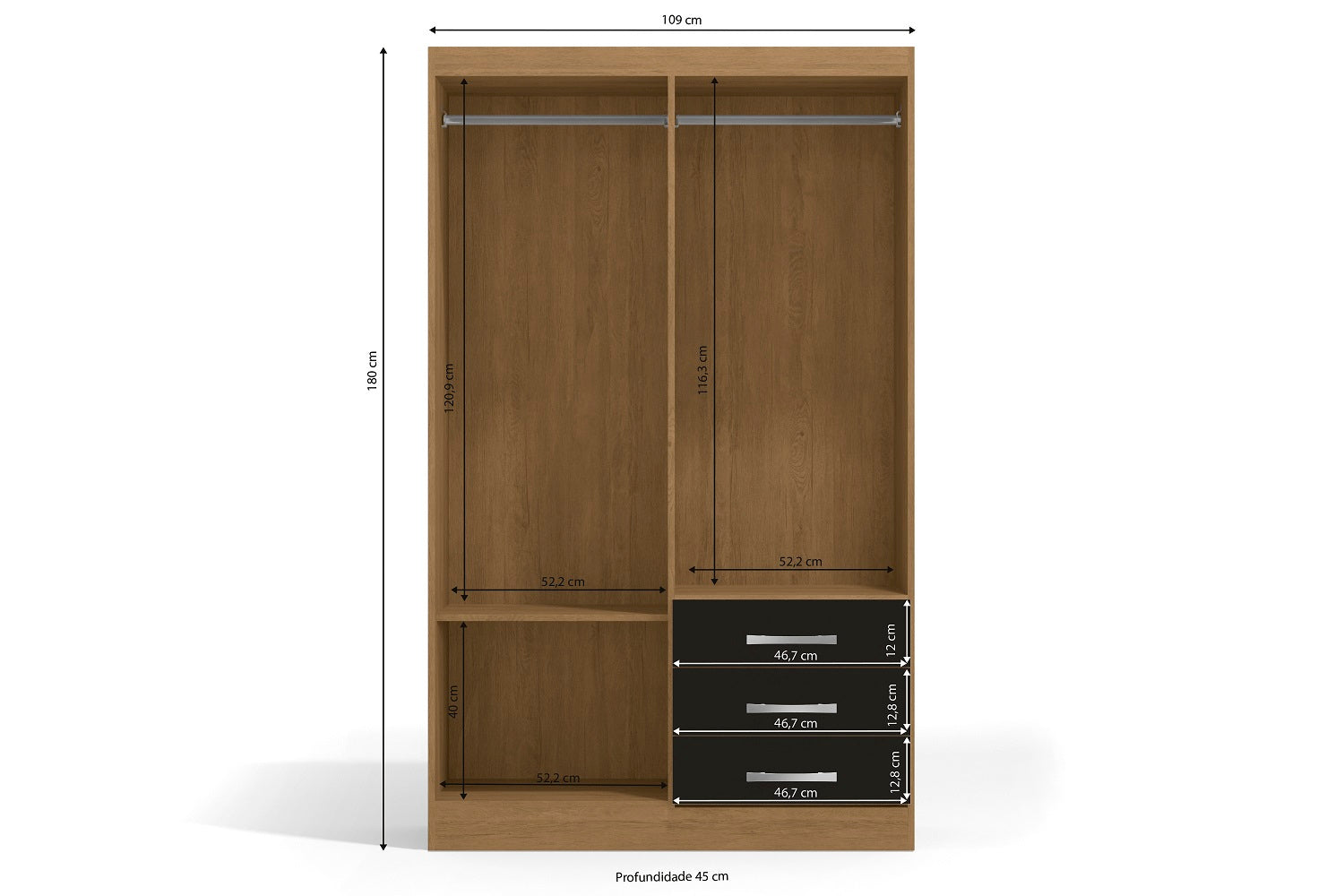 Este closet con un tamaño medio, es el indicado para aquellas personas que buscan mantener su habitación ordenada dejando espacio suficiente para moverse libremente. Viene en diferentes colores que puedes combinar con tu mobiliario.