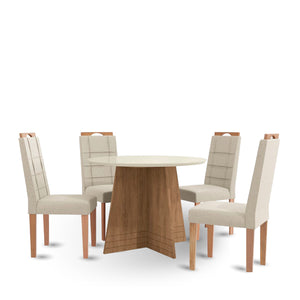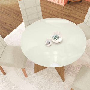 Este juego es muy versátil, puede servir tanto de comedor principal o como comedor de diario en la cocina. La terminación del vidrio y la madera color nogal combinan excelente con muchos estilos decorativos.