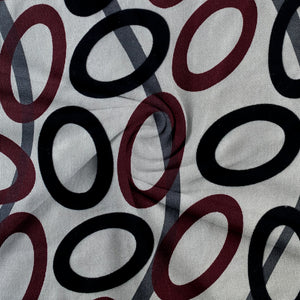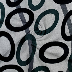 Hermosa tela flock con diseño de óvalos en diferentes colores, Es una tela de buena durabilidad muy versátil que se utiliza para la tapicería.