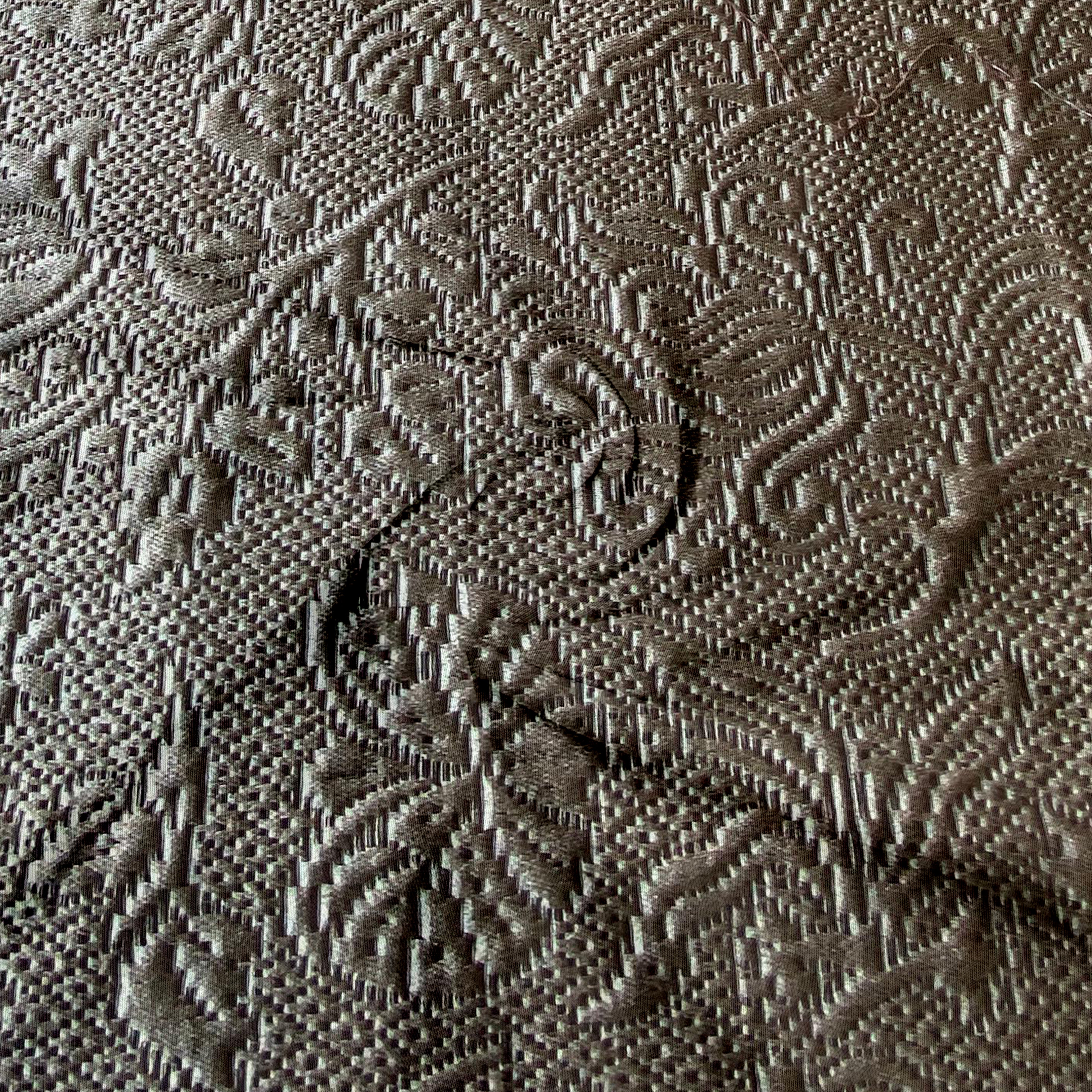 Hermosa tela Jacquard (por algunos llamado brocato) noble, de alto tráfico, usado principalmente para tapicería. Se puede usar para cobertores.