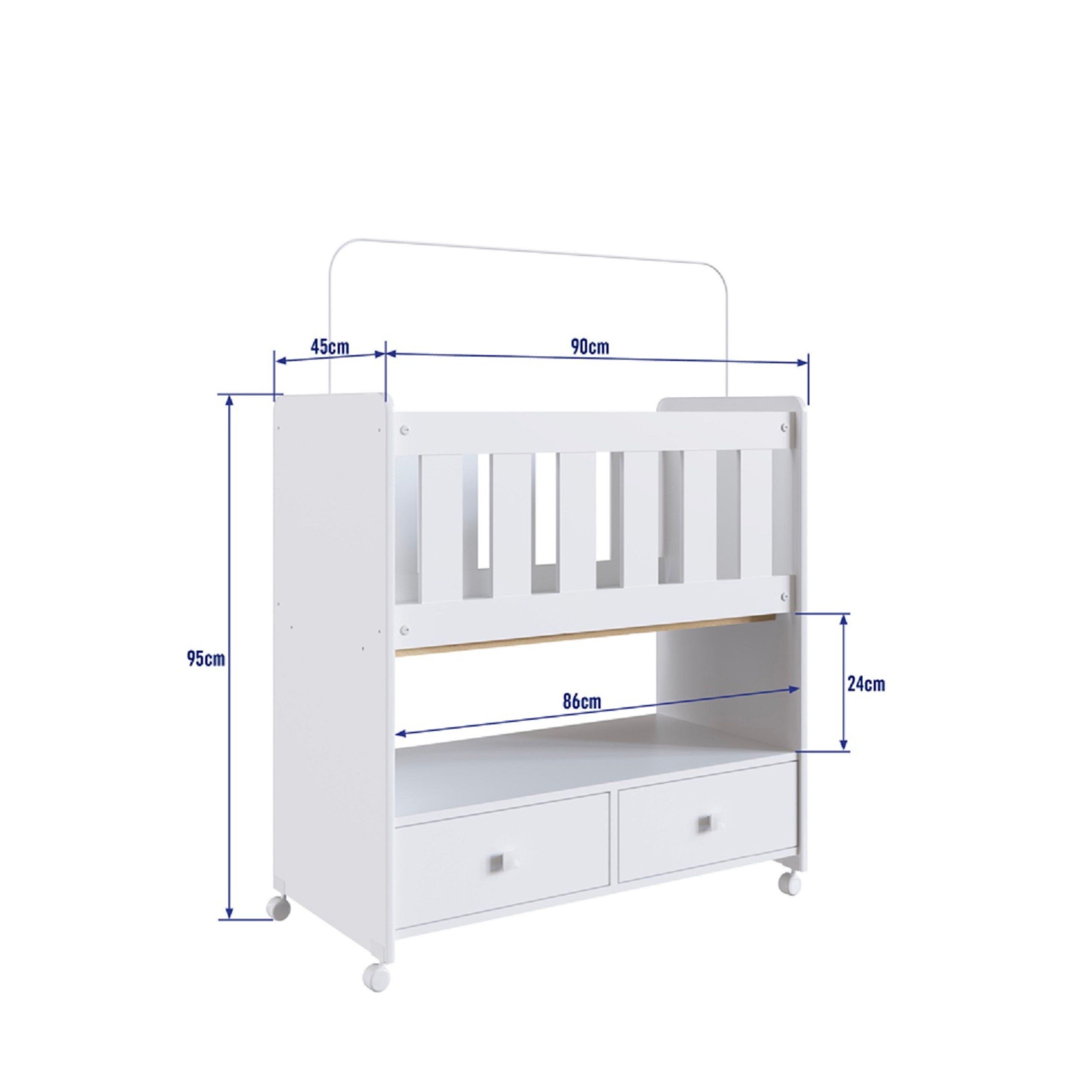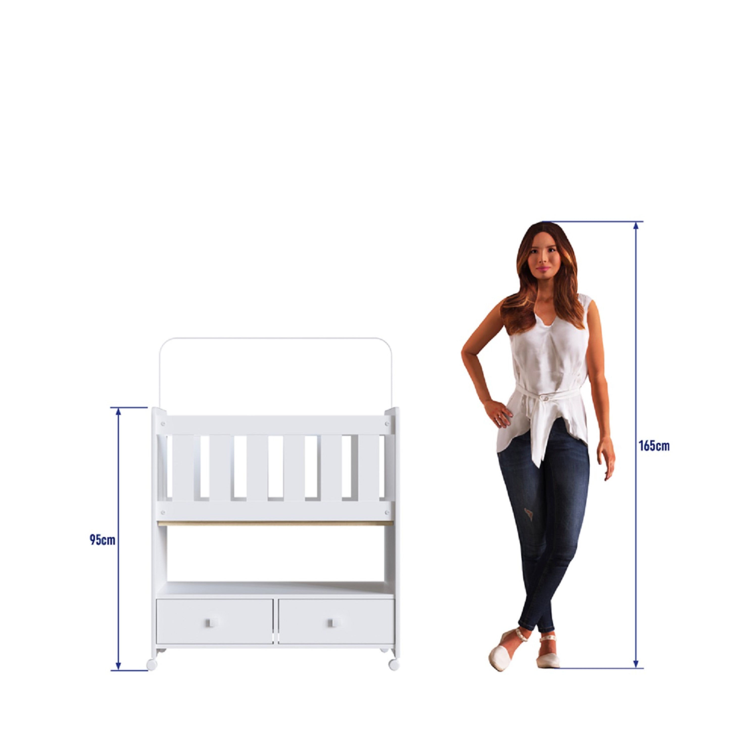 Esta mini cuna fija, es útil para acompañar los primeros días de vida de tu bebé y darle toda la atención que merece. Contempla 2 cajones para guardar ropa, artículos de higiene o lo que necesites almacenar.