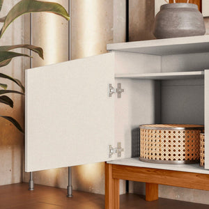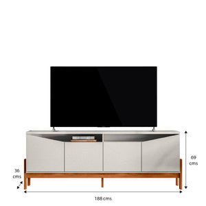 Rack con un diseño muy moderno y versátil que combinará en el espacio que lo quieras utilizar. Si te gusta que tus cosas no queden expuestas a la vista, este mueble es ideal para ti, tiene una gran capacidad de almacenaje. Su tamaño es idóneo para LCD de hasta 75 pulgadas.