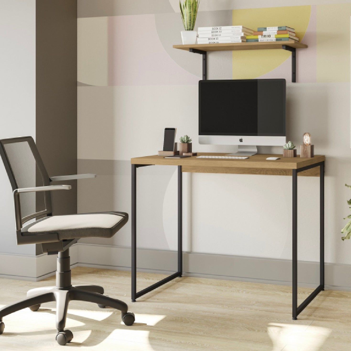 Repisa simple de línea minimalista diseñada para colocar adornos o figuras decorativas. Se complementa muy bien con otros productos de la misma línea Industrial.
