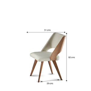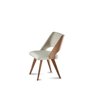 Silla de líneas modernas, con calado en el respaldo. Su tapiz de color neutro, combina a la perfección con diferentes tonos de mesas.